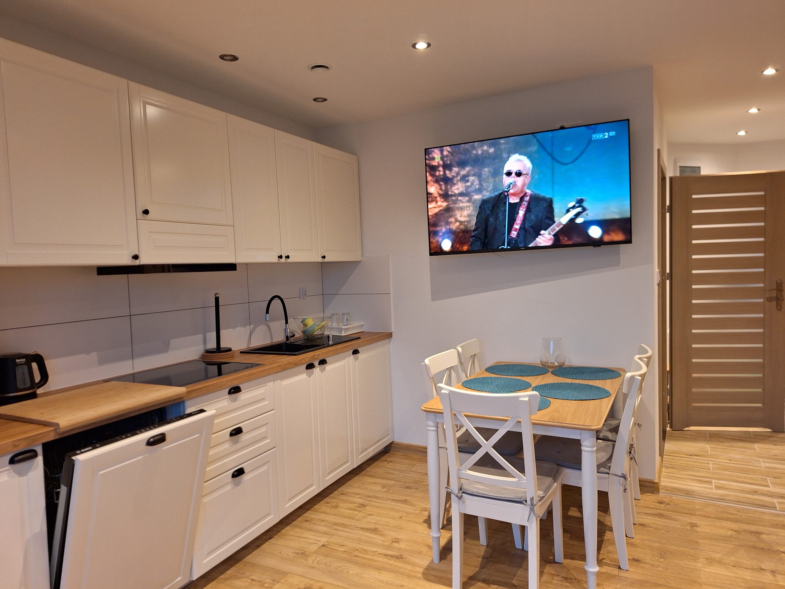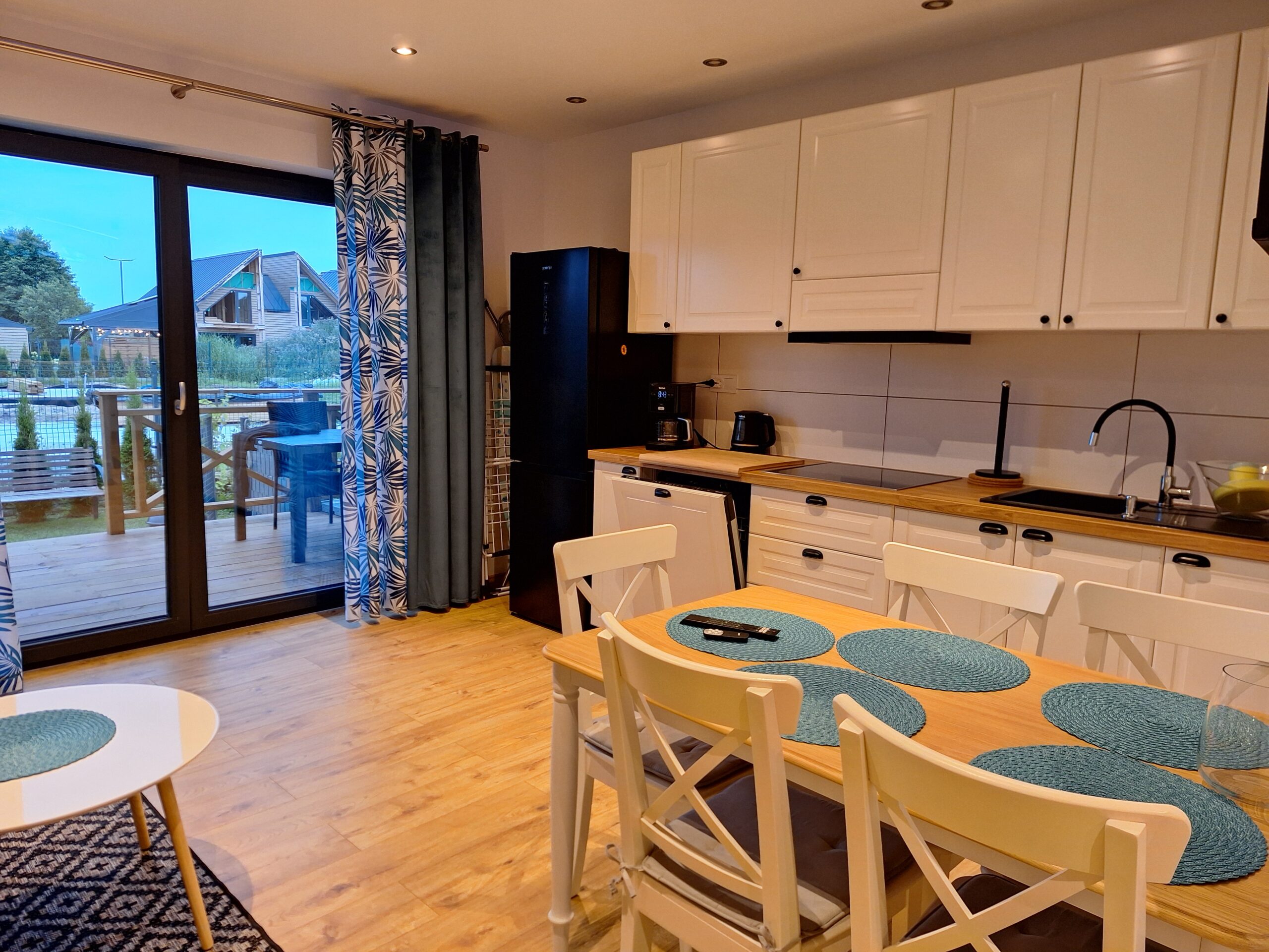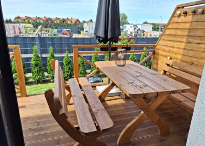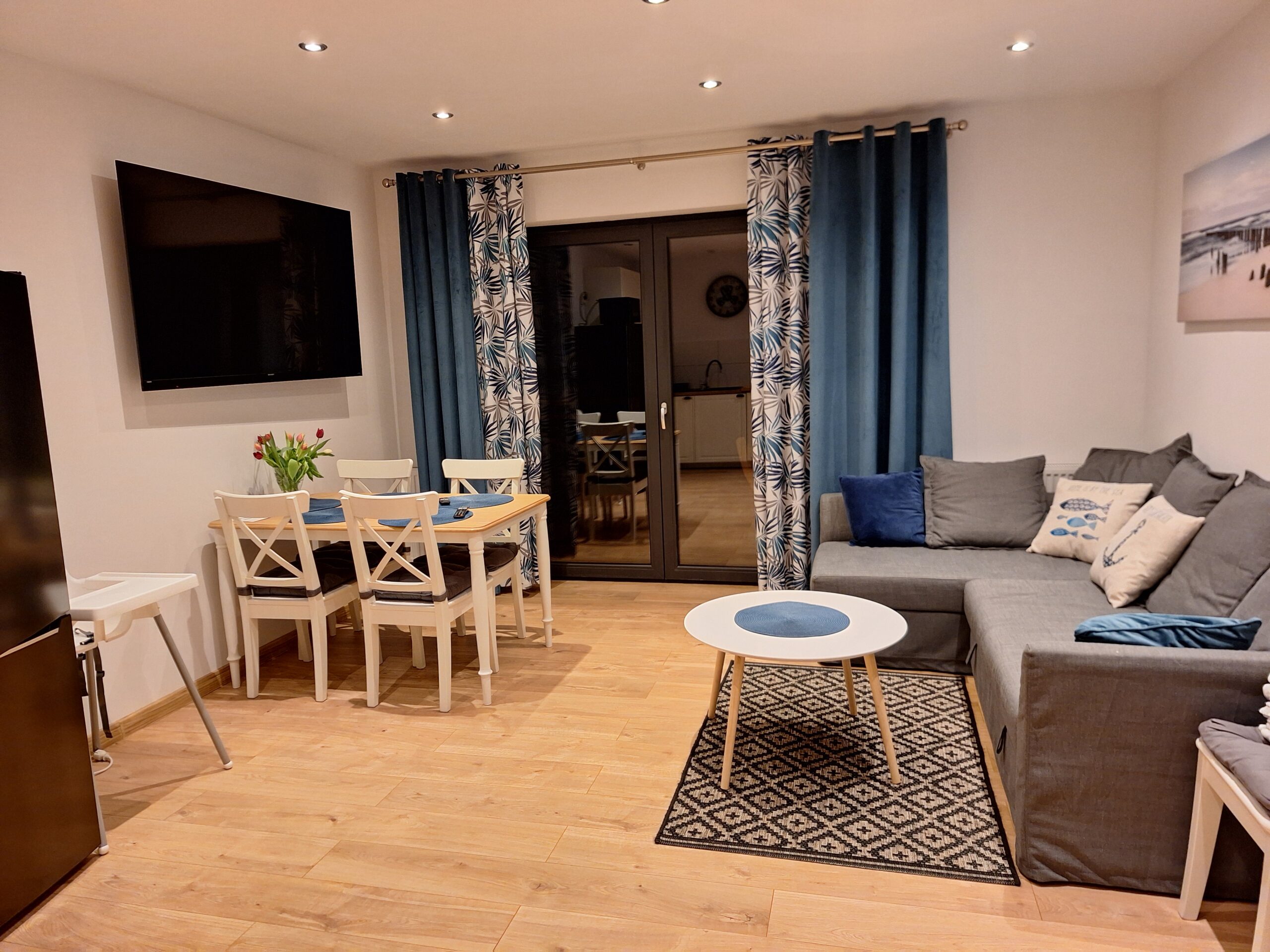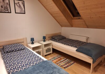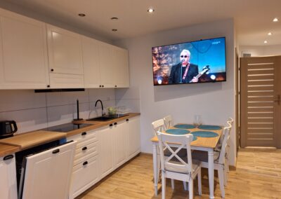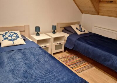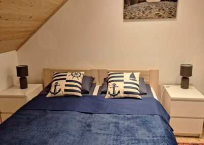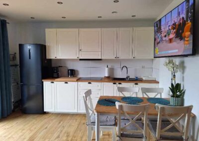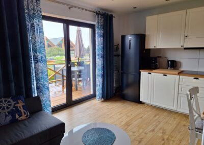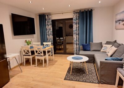 Każdy z apartamentów przewidziany jest dla 5 osób z możliwością zakwaterowania 2 osób więcej za dodatkową opłatą.