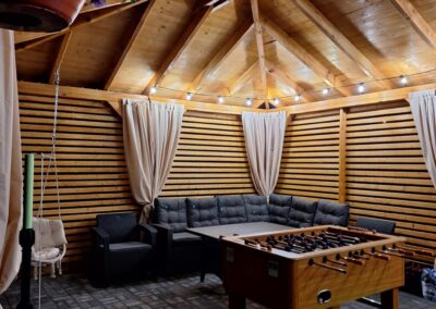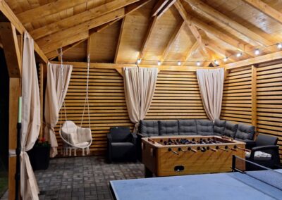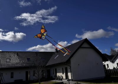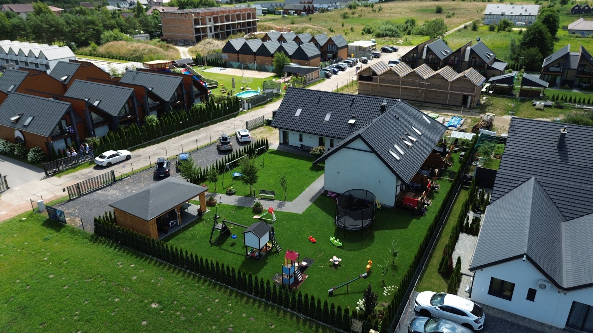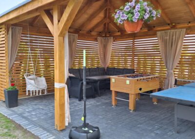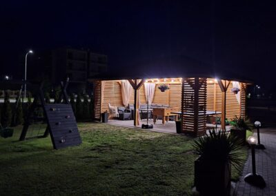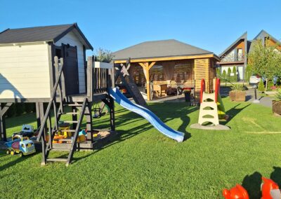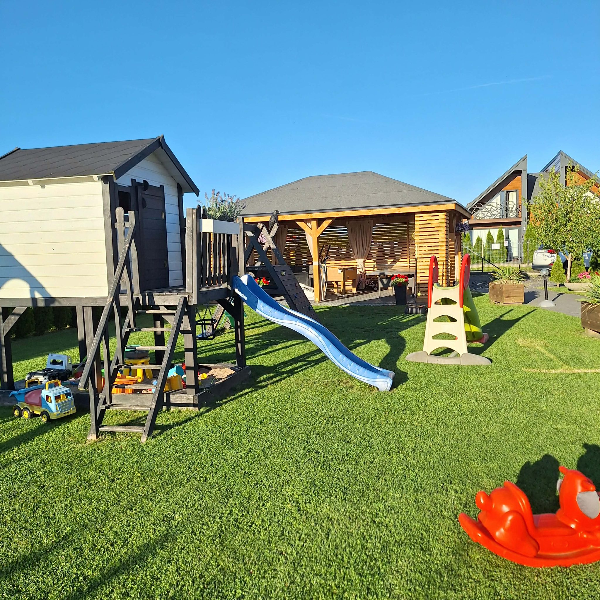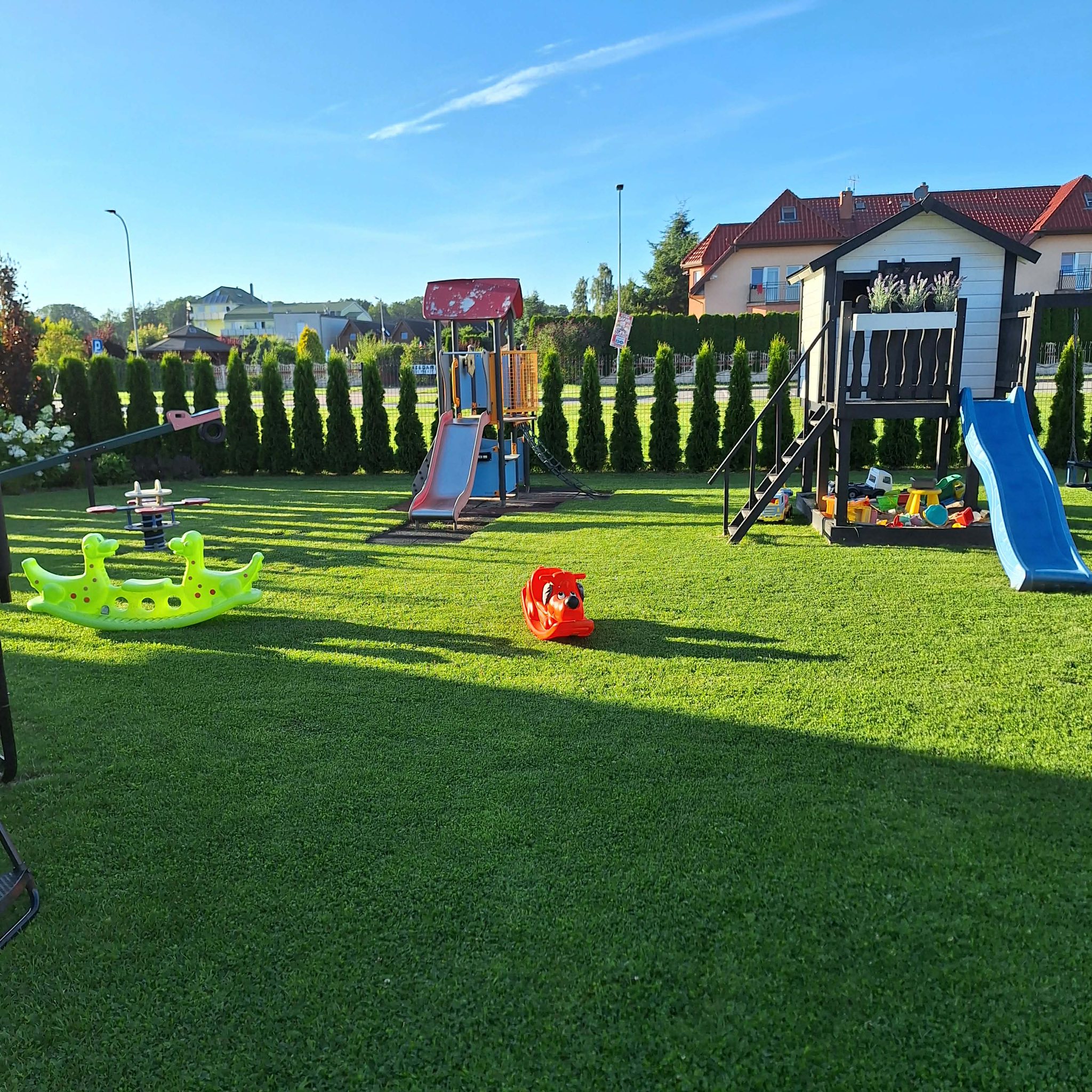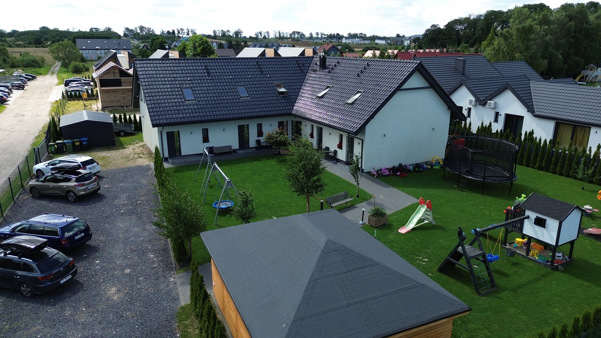 Meridian Sarbinowo to kompleks bogato wyposażonych sześciu domków apartamentowych (dwupoziomowych) z salonem, dwiema sypialniami, łazienką i toaletą, o łącznej powierzchni 65m2. Do każdego z domków przynależy prywatny taras z wyjściem na ogród.
