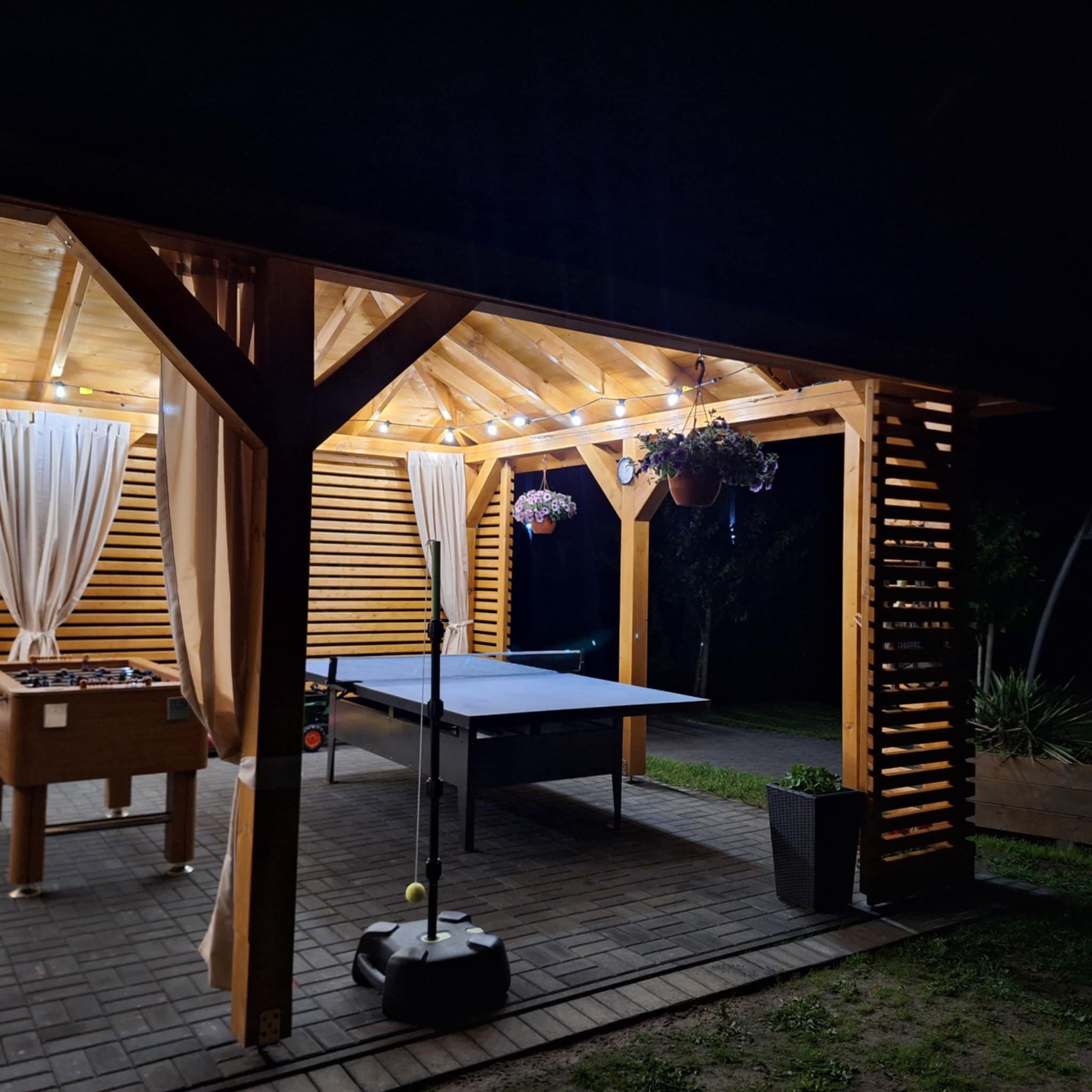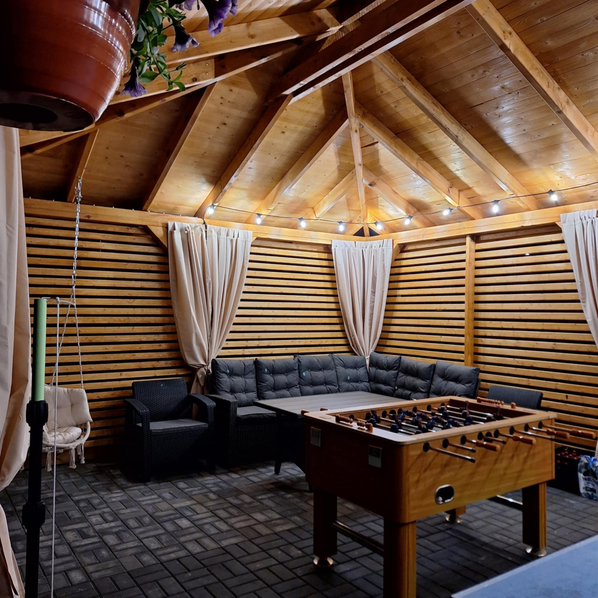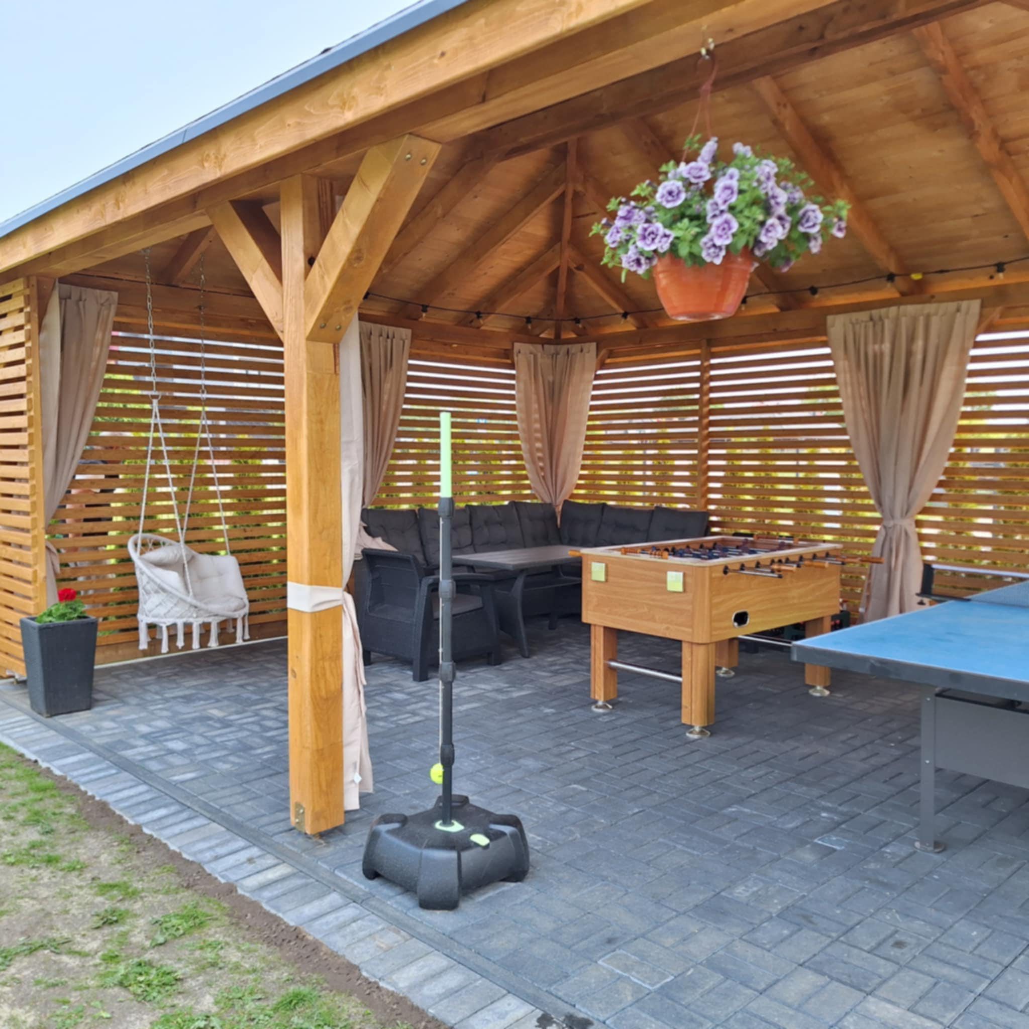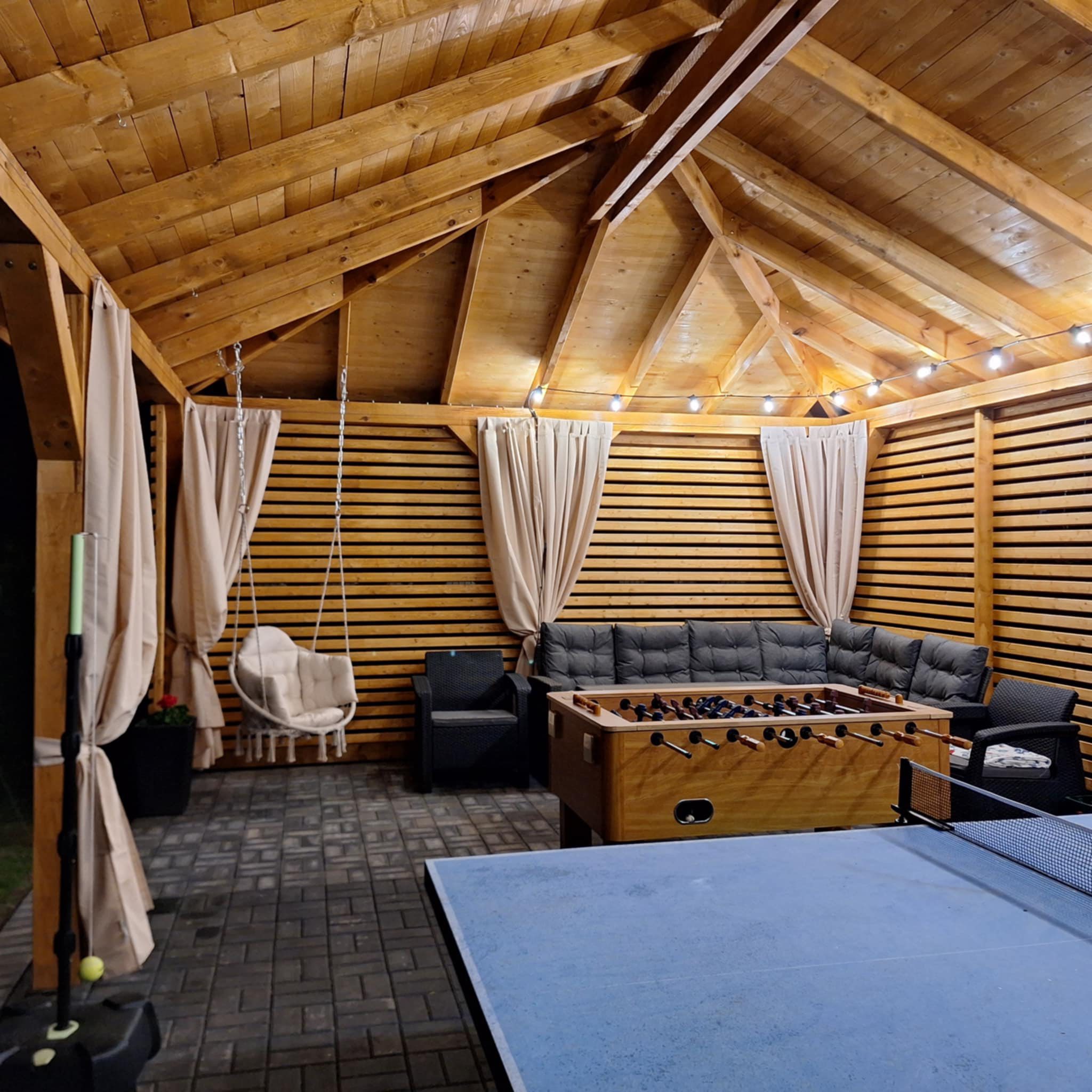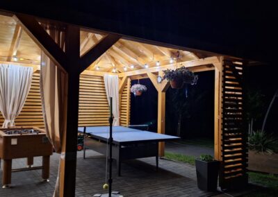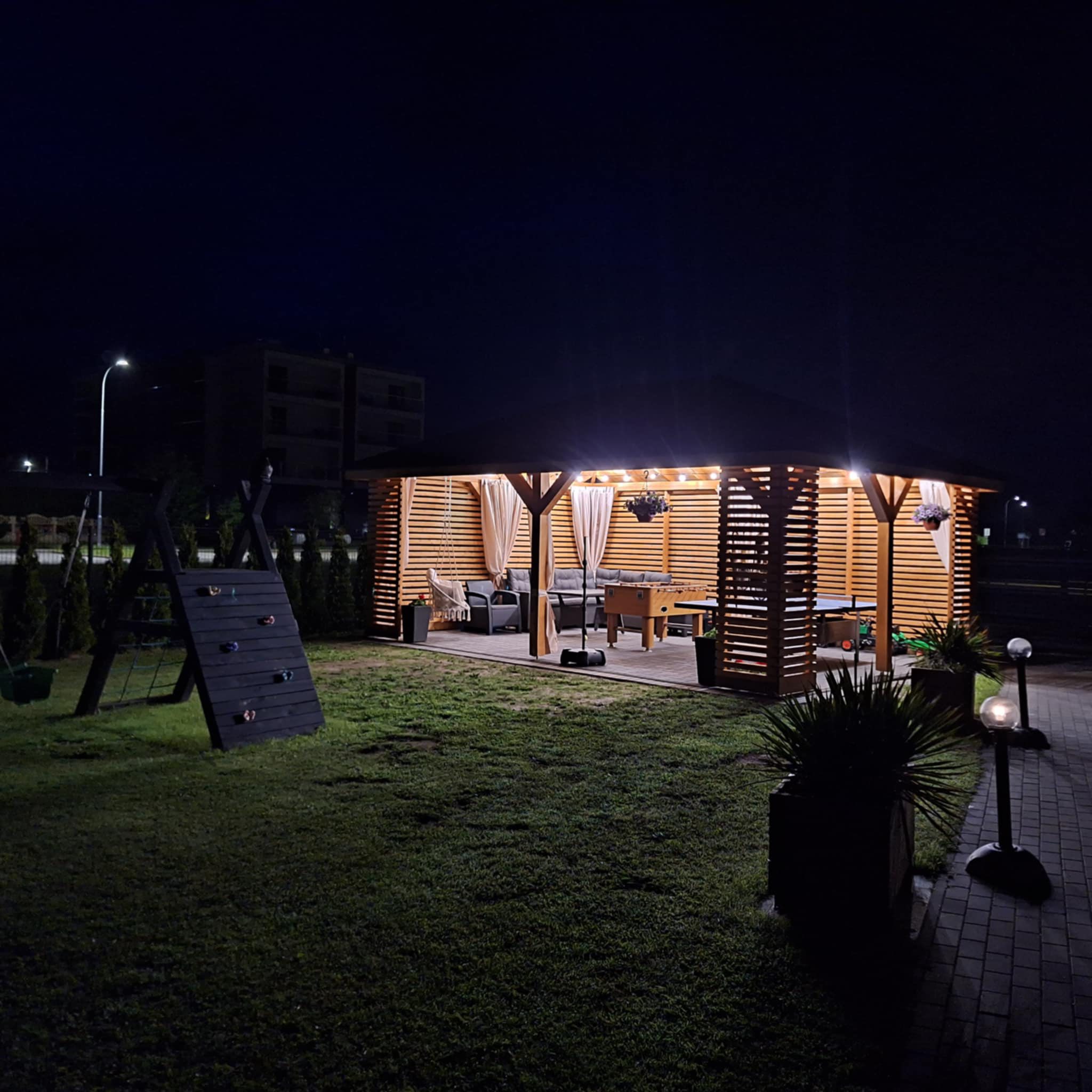 Meridian Sarbinowo to kompleks bogato wyposażonych sześciu domków apartamentowych (dwupoziomowych) z salonem, dwiema sypialniami, łazienką i toaletą, o łącznej powierzchni 65m2. Do każdego z domków przynależy prywatny taras z wyjściem na ogród.